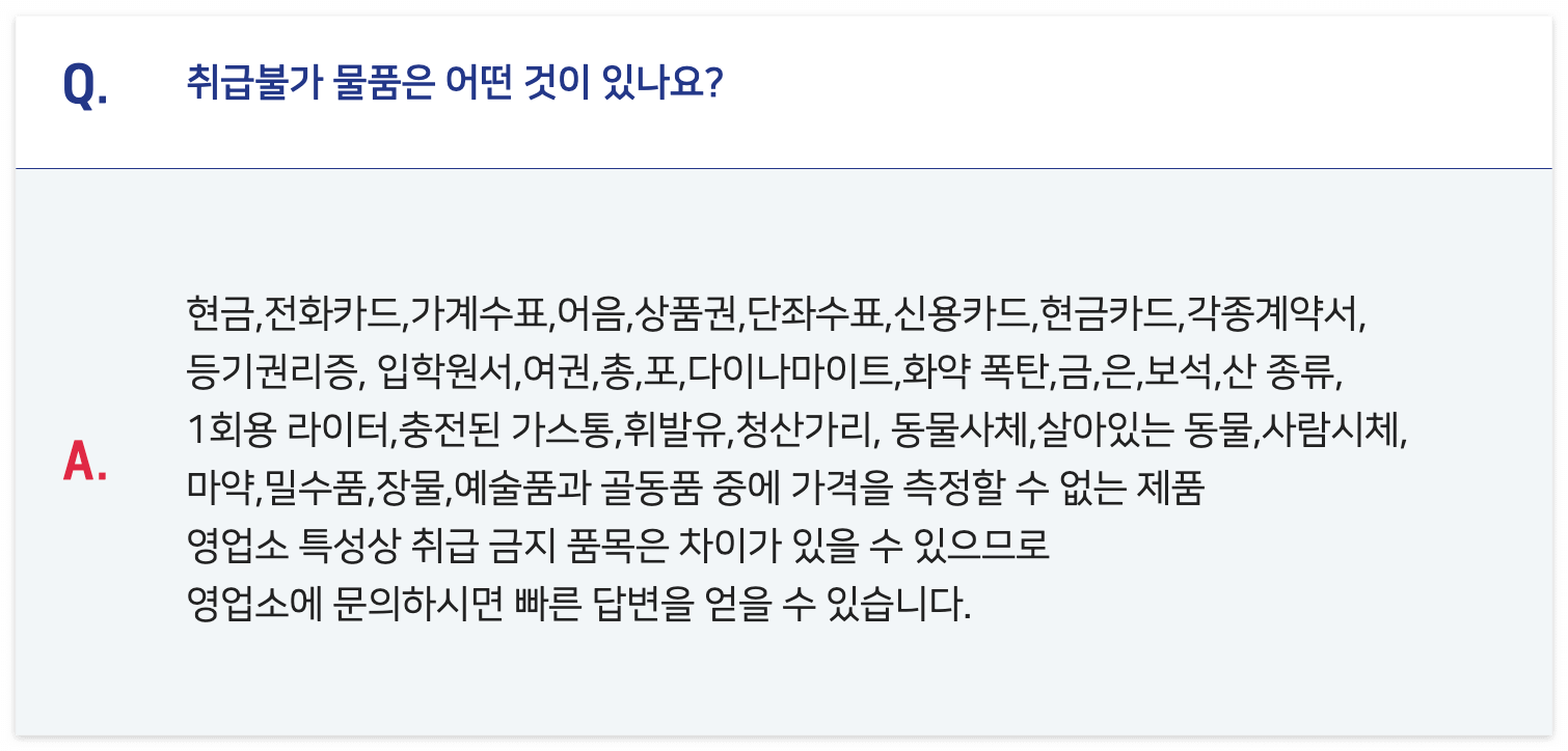 두 택배사의 취급 불가 물품도 확인해보시기 바랍니다.