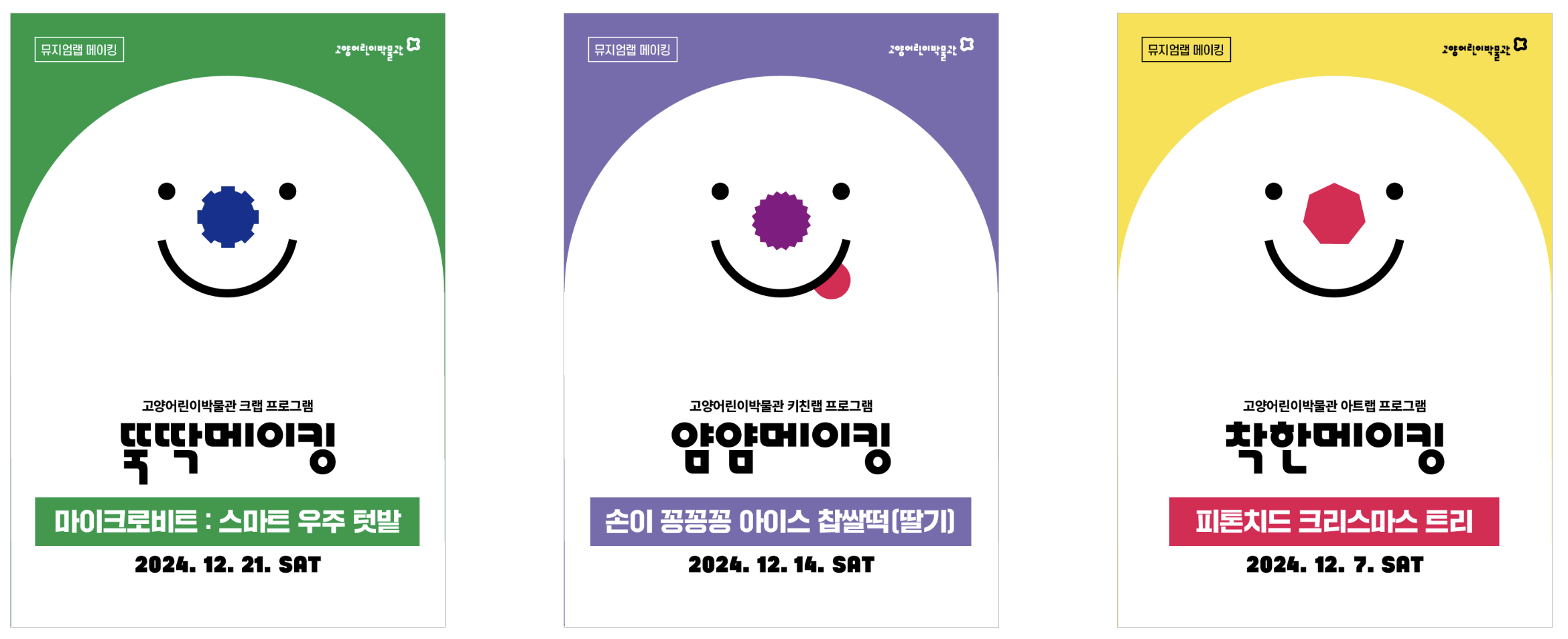 얌얌메이킹 : 쿠킹 착한메이킹 : 공예 뚝딱메이킹 : 과학/공학 |
