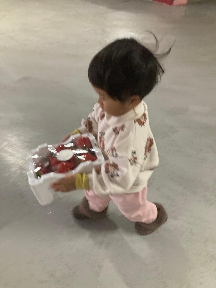 직접 딴 딸기라며 직접 들고 집에 도착
